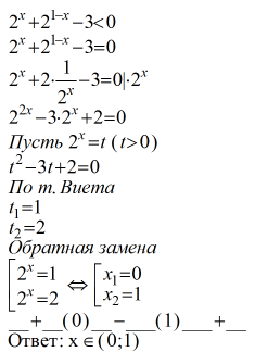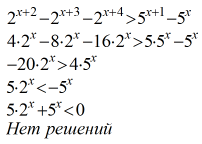 И теперь мы видим одну важную вещь. Слева - показательная функция, которая принимает лишь положительные значения. Из нашего неравенства видно, что она меньше отрицательного значения, чего быть не может. Значит, решений у неравенства нет.