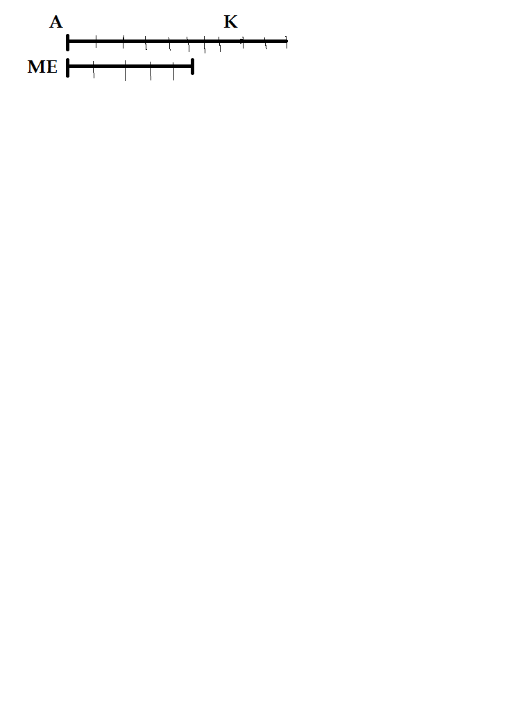Брат старше сестры на 5 лет. Обозначь отрезком МЕ возраст сестры, если возраст брата обозначен отрезком АК