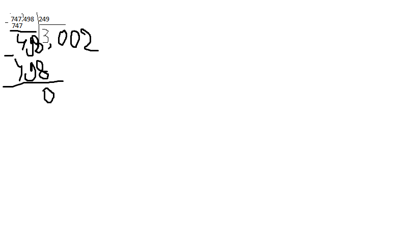 747.498/249= сначала берешь по три249+249+249=747 итак значит потом 747отделяешь точкой и потом бери 249+249=498 по два итого значит 3.2 получается