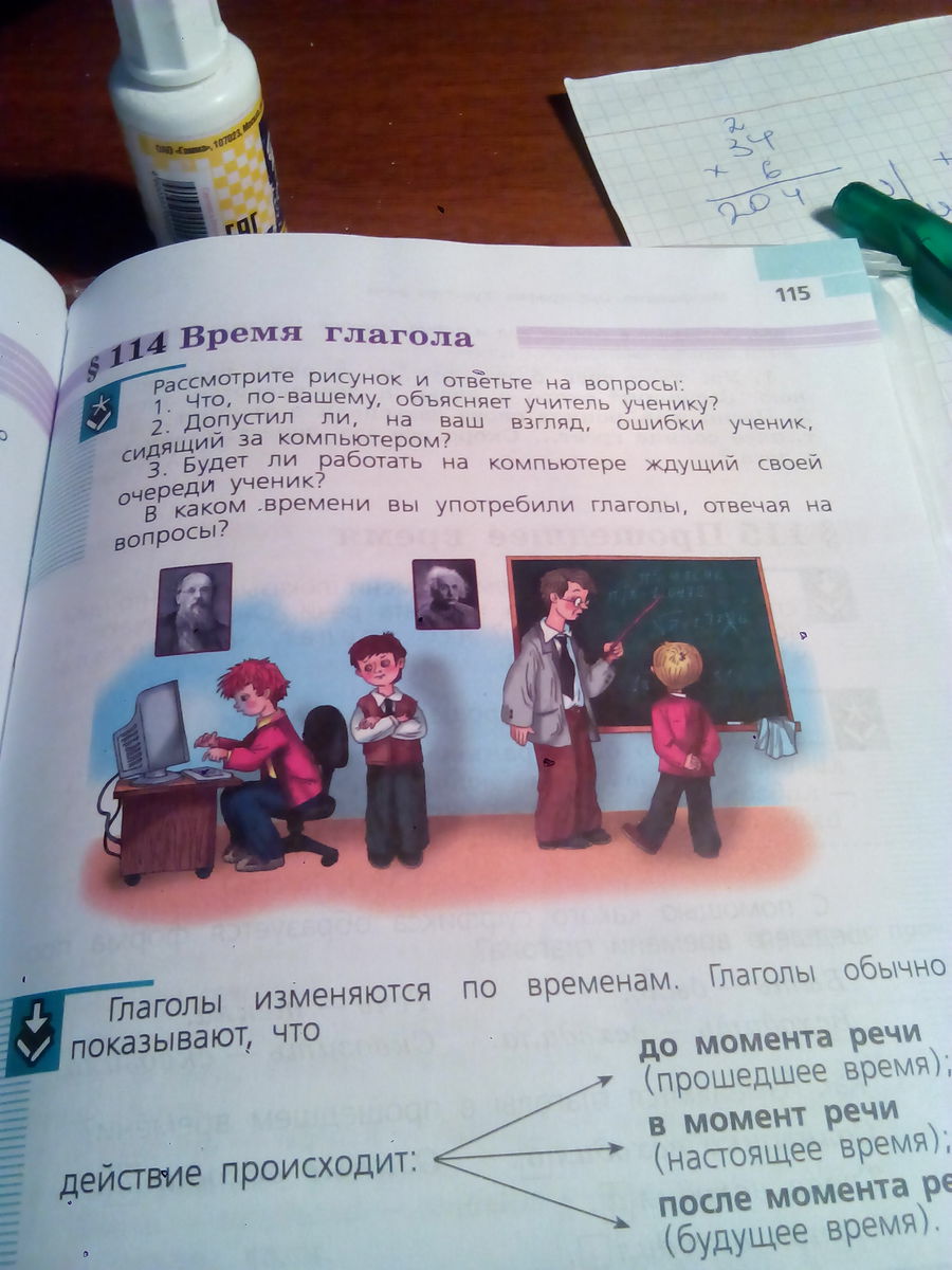 напишите что в классе сейчас в тот момент когда вы пишите 2) что происходило до этого момента 3)что произойдёт после того как вы окончите работу. Обозначьтет сокращённо время глаголов (прошедшее, будущее и настоящие)
