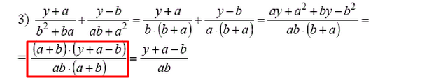 А теперь видим, что множитель (a+b) 0 общий для всех слагаемых. Выносим его за скобку: