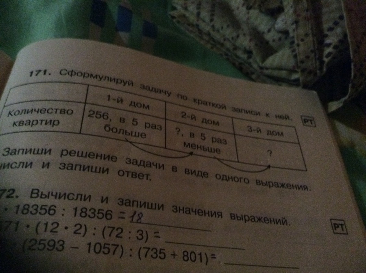 В первом доме 256 квартир, во втором в пять раз больше чем в первом, а в третьем в пять раз меньше чем во втором. Сколько квартир в третьем доме?