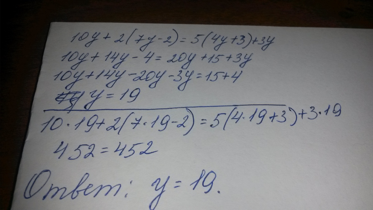 10у+2(7у-2)=5(4у+3)+3у