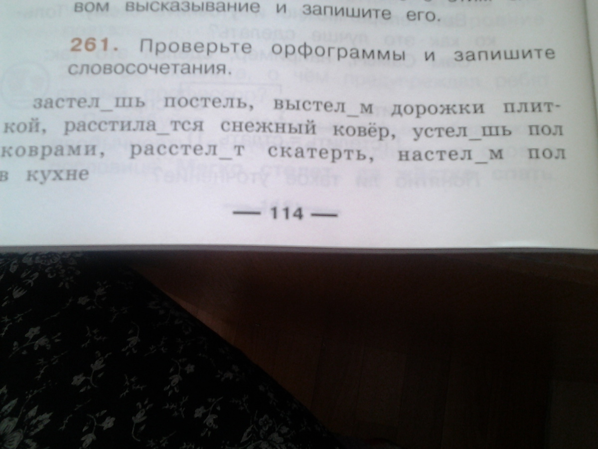 Застелешь постель, выстелим дорожки плиткой, расстилается снежный ковер, устелешь пол коврами, расстелит скатерть, настелим пол в кухне