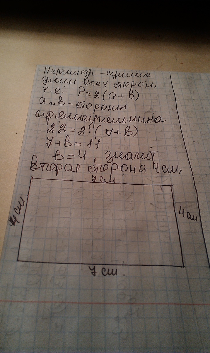 периметр прямоугольника равен 22см а одна из его сторон равна 7 см