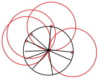 расстояния от точки до всех центров одинаковые и равны радиусу...