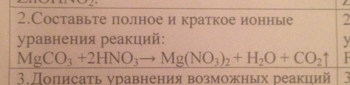 MgCO3 + 2H(+) + 2(NO3)(-) = Mg(2+) + 2(NO3)(-) + H2O + CO2↑