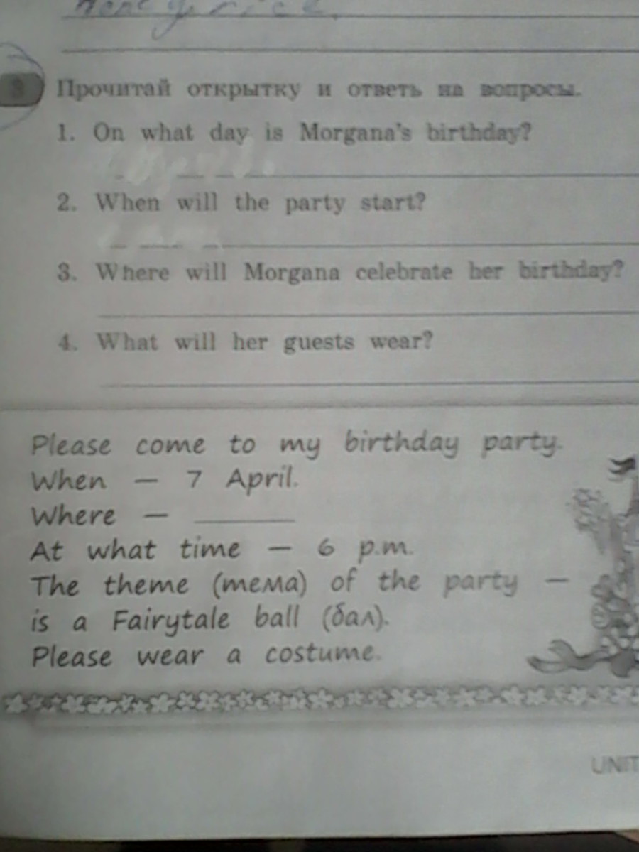 3. Where will Morgana celebrate her birthday?-