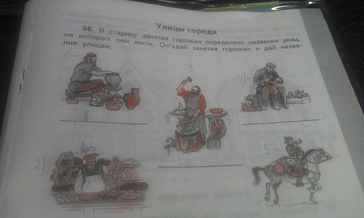 Гончар,сапожник,ездок,пекарь(булочник),кузнец.