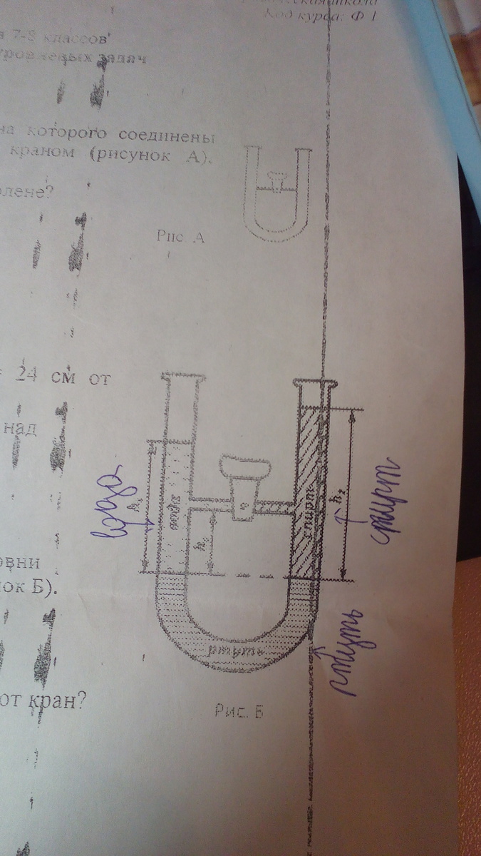 Найдите, на сколько поднимется ртуть в правом колене.