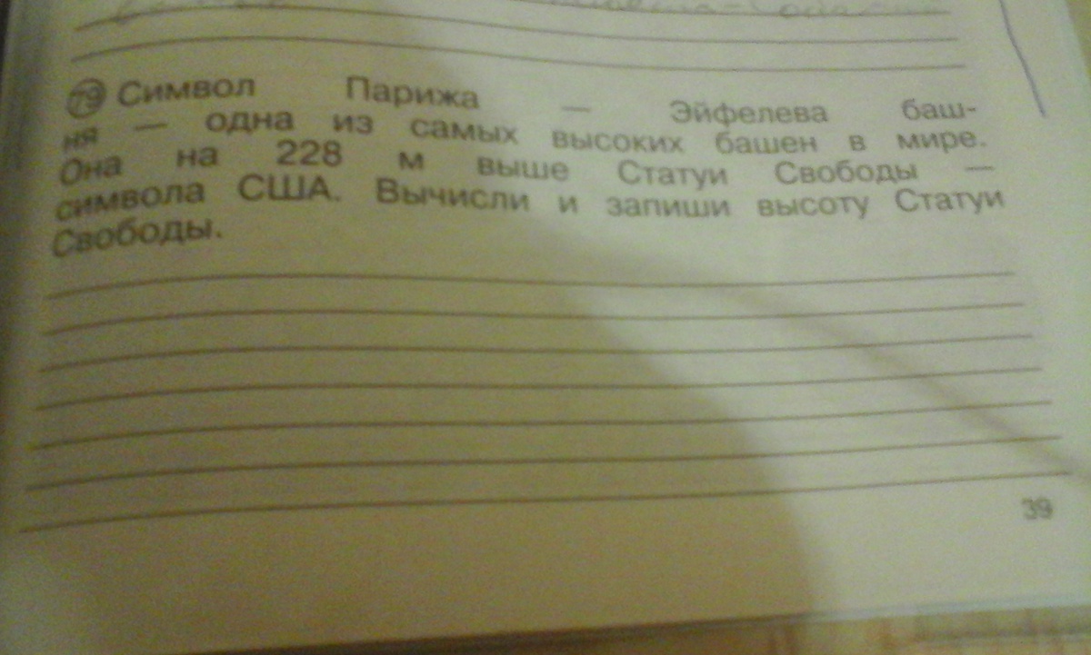 Она на 228 м выше Статуи Свободы - символа США. Вычесли и запиши высоту Статуи Свободы