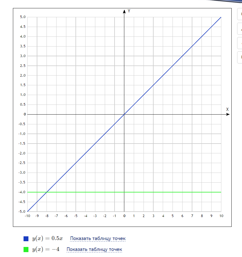 3). В одной и той же системе координат постройте графики функций у = 0,5х и у = - 4 . Определите координаты точки пересечения графиков.