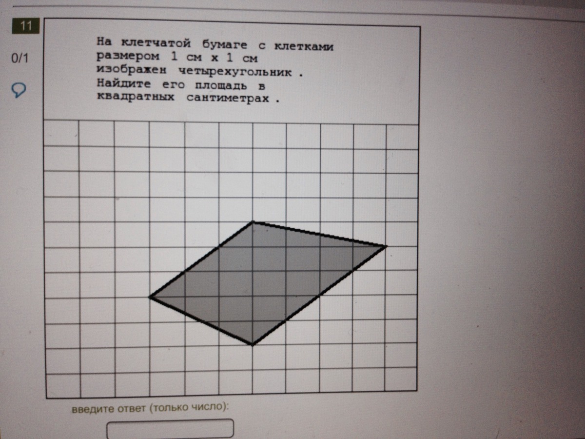 На клетчатой бумаге с клетками размером 1смх1см изображен четырехугольник. Найдите его площадь в квадратных см.