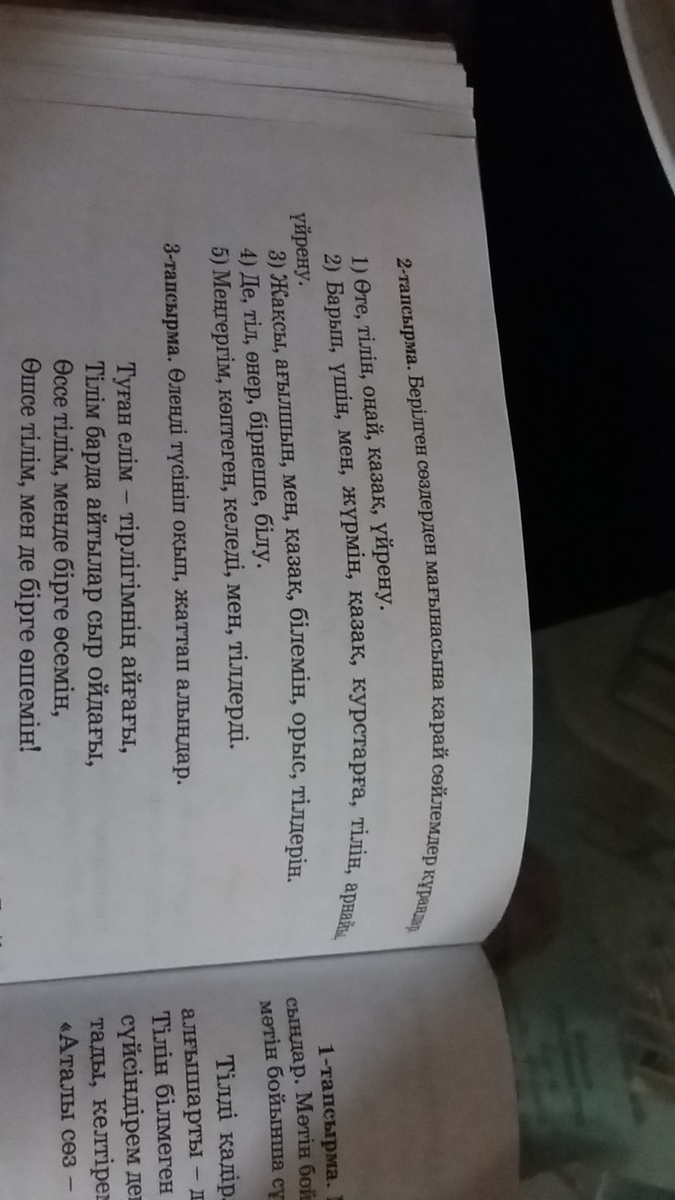 2) Мен қазақ тілін үйрену үшін, арнайы курстарға барып жүрмін.