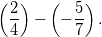 (frac{2}{4})-(-frac{5}{7})=frac{1}{2}+frac{5}{7}=frac{7+10}{14}=frac{17}{14}=1frac{3}{14}