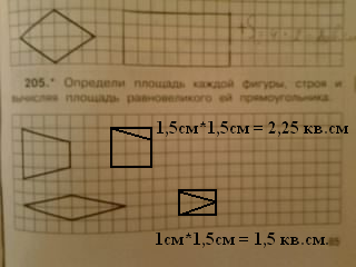 определи площадь каждой фигуры, строя и вычисляя площадь равномерного ей прямоугольника