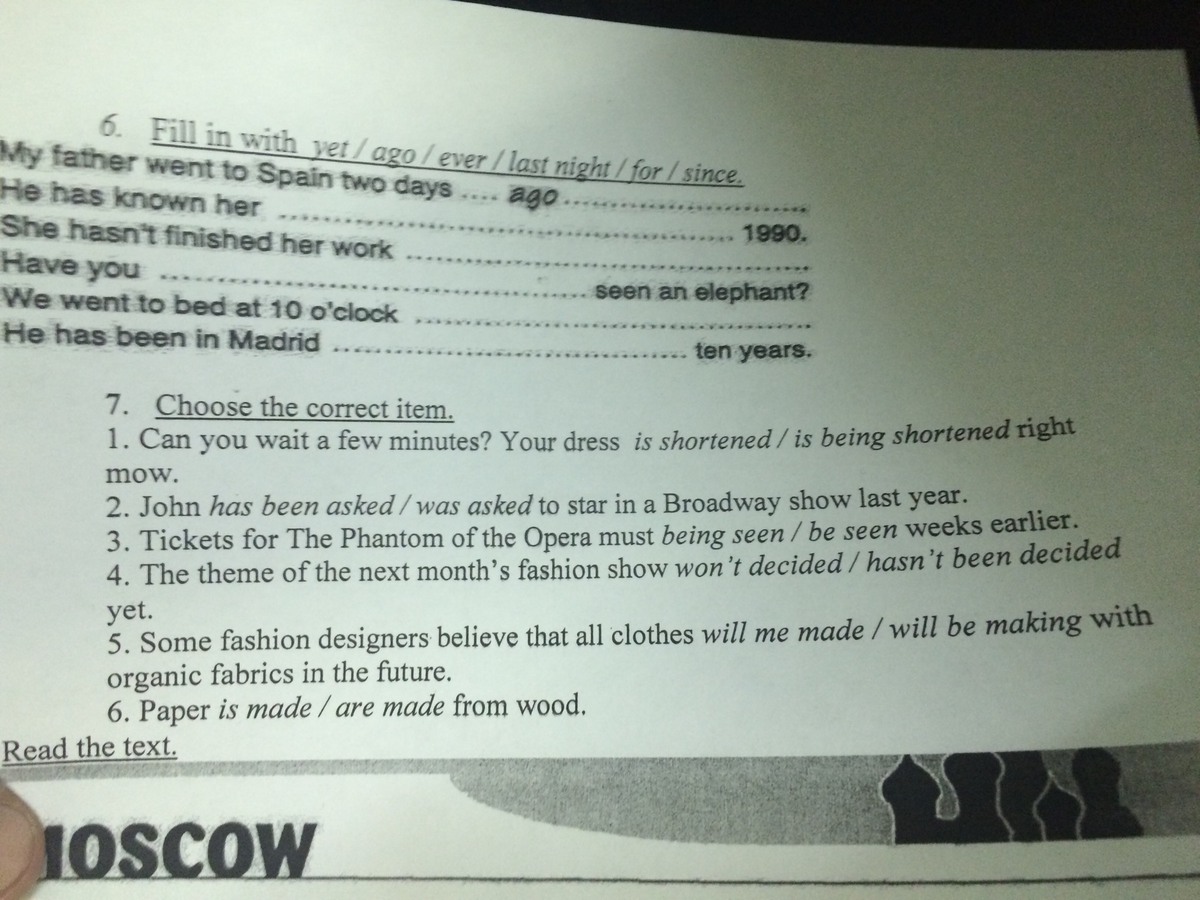 2) since 3) yet 4) ever 5) last night 6) for