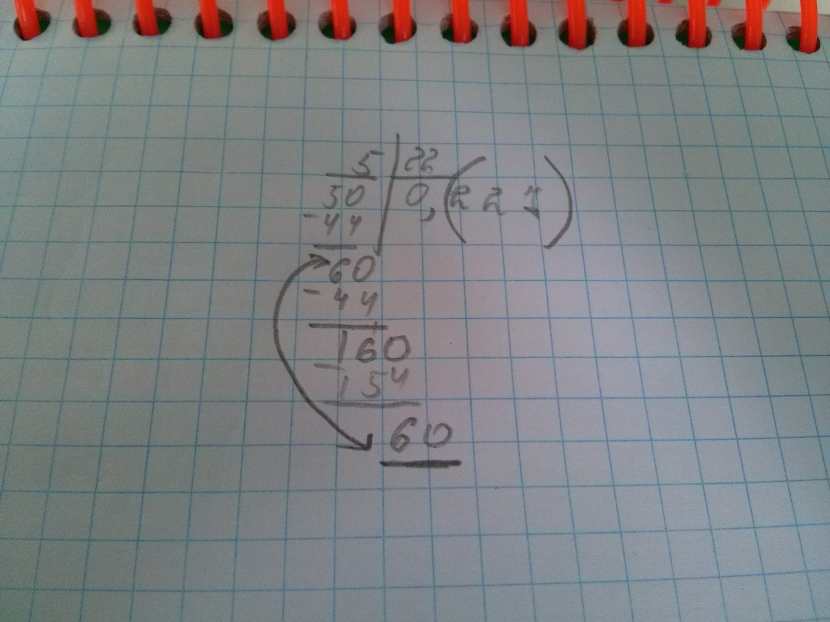 Запишите обыкновенную дробь 5/22 в виде десятичной периодической дроби. Подчеркните период. Help Me! Help!