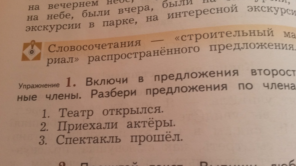 Включи в предложения второстепенные члены . Разбери предложения по членам