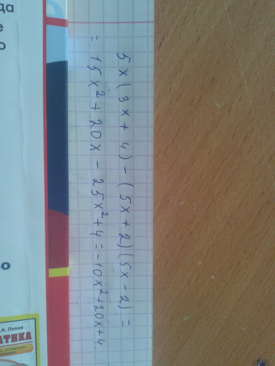 -10х+20х+4, в начале умножение одночлена на многочлен, вторая часть-разность квадратов