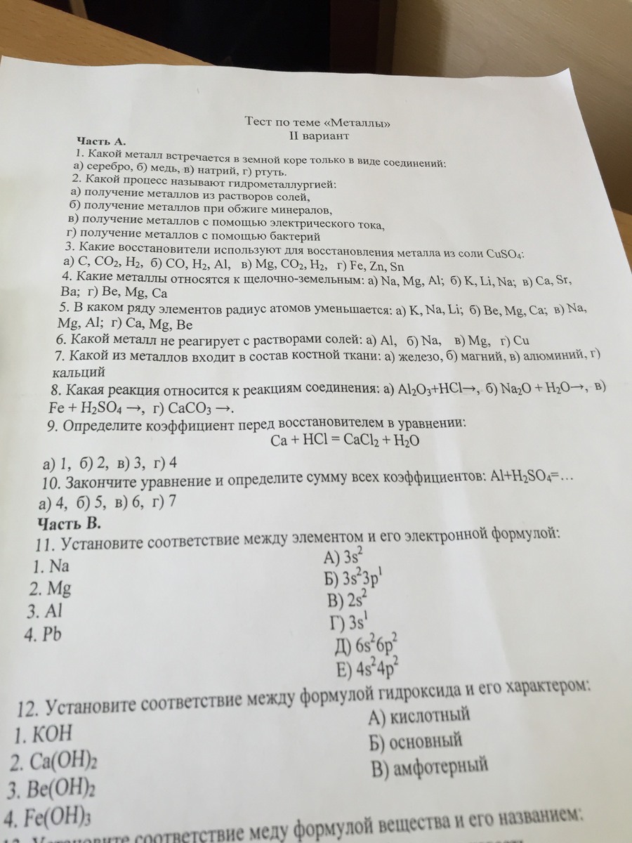 В2 (1-б, 2-б, 3-в, 4-в(слабые амфотерные))