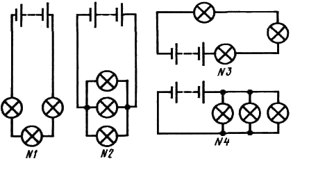 На каких электрических схемах изображено параллельное соединение лампочек?