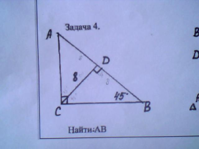 Значит CD=AD=DB=8 => АВ=(AD+DB)=8+8=16