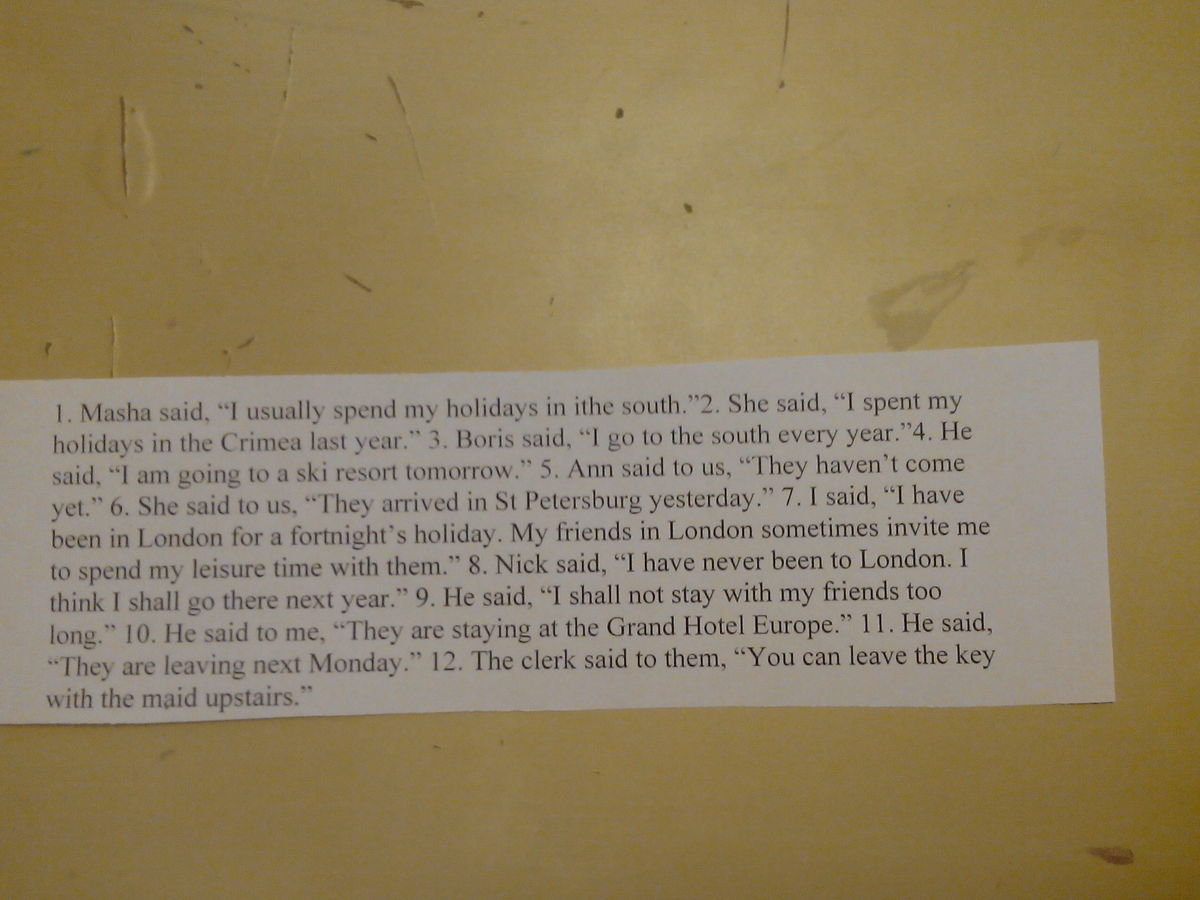 7. I said that I had been in London for a fortnight's holiday. I added that my friends in London sometimes invited me to spend my leisure time with them.