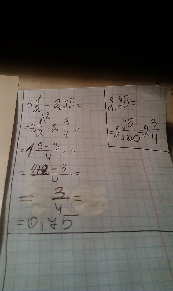 3 1/2-2,75 = 7/2 -2,75 = 3,5 - 2,75 = 0,75