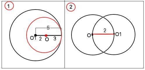 1)Расстояние между центрами двух окружностей и радиус меньшей в сумме дают радиус большей окружности. 2 см+3 см=5 см. Эти окружности касаются внутренним касанием.