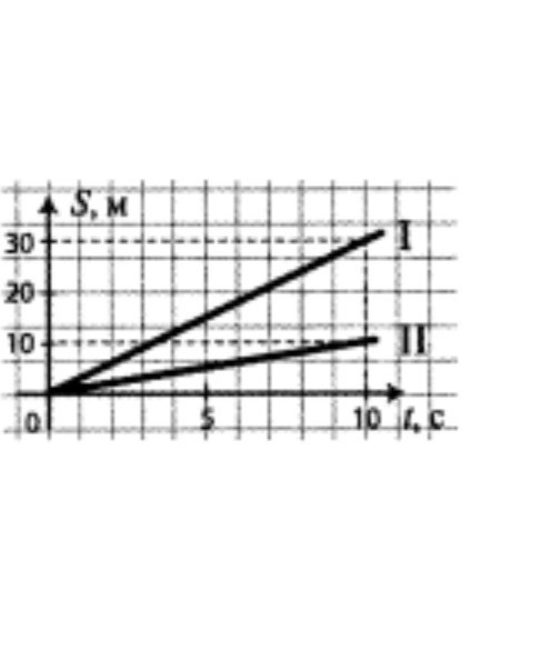 На графике представлена зависимость пути от времени для двух тел. Скорость какого тела больше?
