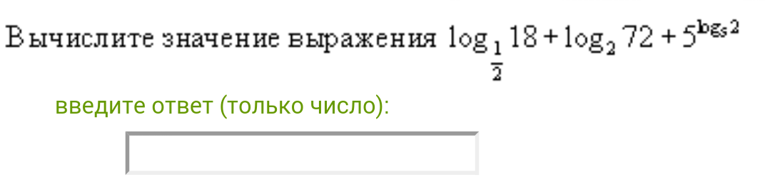 log₁/₂ 18+log₂72+5^log₅2=-log₂18+log₂72+2=log₂(72/18)+2=log₂4+2=2+2=4