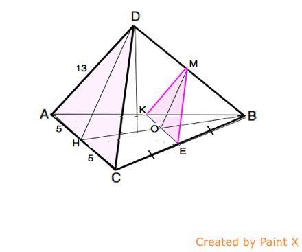 В тетраэдре DABC DA=DC=13,AC=10,E-середина BC.Постройте сечение тетраэдра плоскостью,проходящей через точку E параллельно плоскости ADC,и найдите площадь сечения.