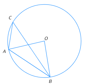 На рисунке точка O − центр окружности, а треугольник OAB − прямоугольный. Найдите величину угла ACB в градусах.