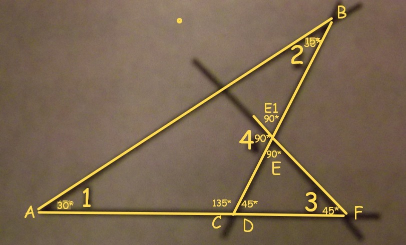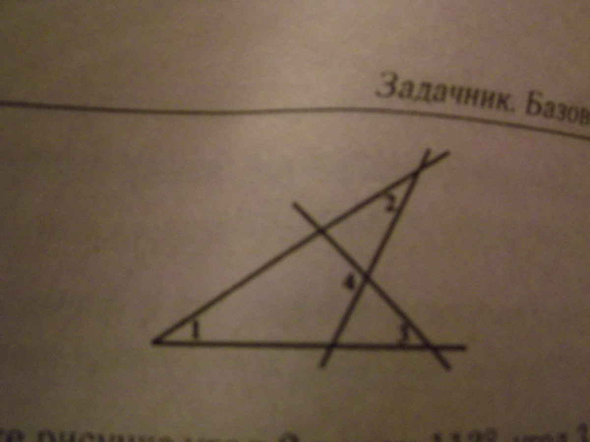 на данном ниже рисунке угол 1 равен 30 градусов,угол 2 равен 15 градусов, угол 3 равен 45 градусов.Найдите градусную меру 4 угла.