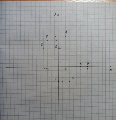 E (0,5) М (0,-4), К (6,0), Р (8,0)
