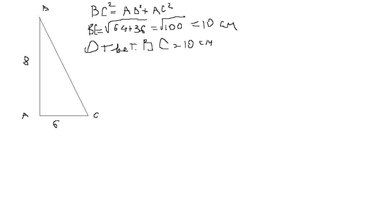1 задача Найдите гипотенузу прямоугольного треугольника если его катеты равны 6 и 8 см Написать подробно по действиям