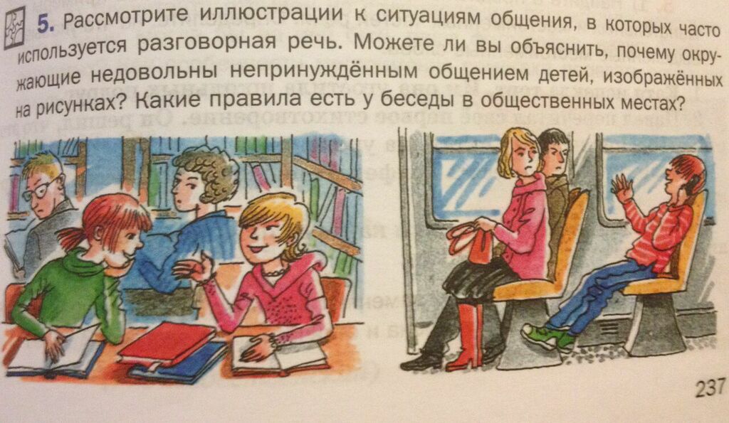 На первом рисунке, ученики явно недовольны тому, что их одноклассники, которые сидят сзади общаются в голос. Скорее всего им это мешает и даже раздражает. На уроках общаться нельзя, потому что ты будешь мешать другим ученикам... Если же нужно что то обсудить, то общаться нужно шепотом, а не в голос, как ученики на картинке.