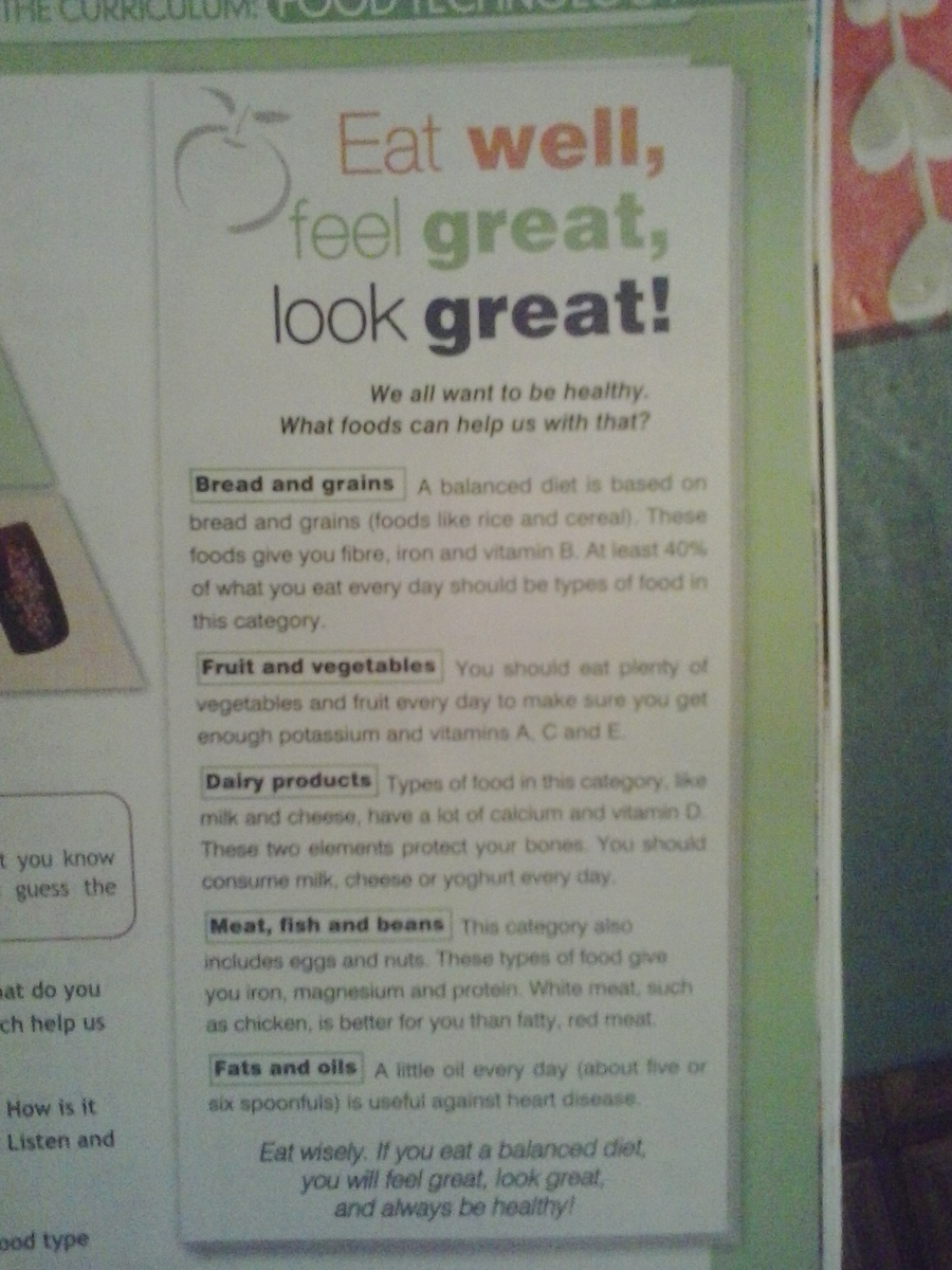 Хлеб и зерна. сбалансированая диета на основе хлебе и зерне (продукты такие как рис и круппы) Эти продукты дают вам волокно, железо и витамин В. По крайней мере 40% что вы едите каждый день должны быть типы продуктов этой категории.