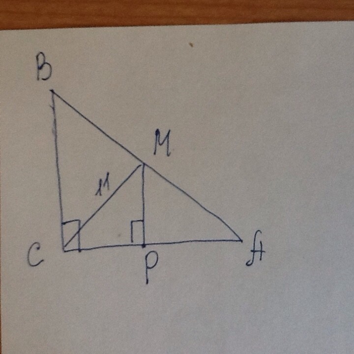 СР=РА по условию, МР-перпендикуляр к СА, значит МР║СА и является средней линией ΔАВС. СМ-медиана ΔАВС, т.к. (·) М-середина АВ.