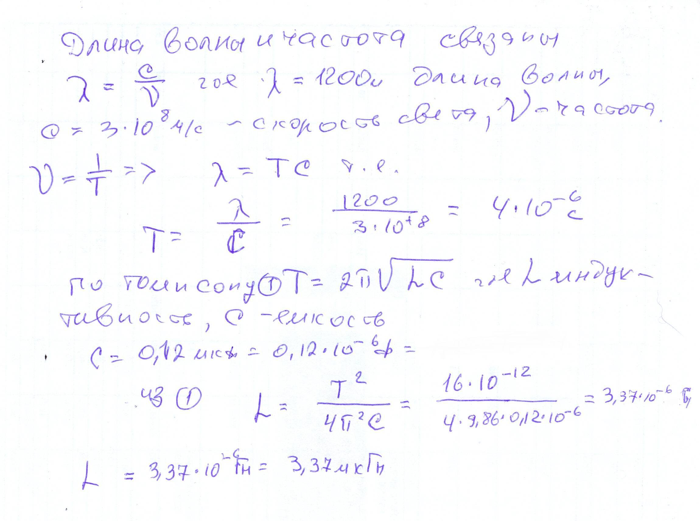 колебательный контур излучает электромагнитные волны длиной 1200м. Определите индуктивность контура, если его емкость равна 0,12 мкФ