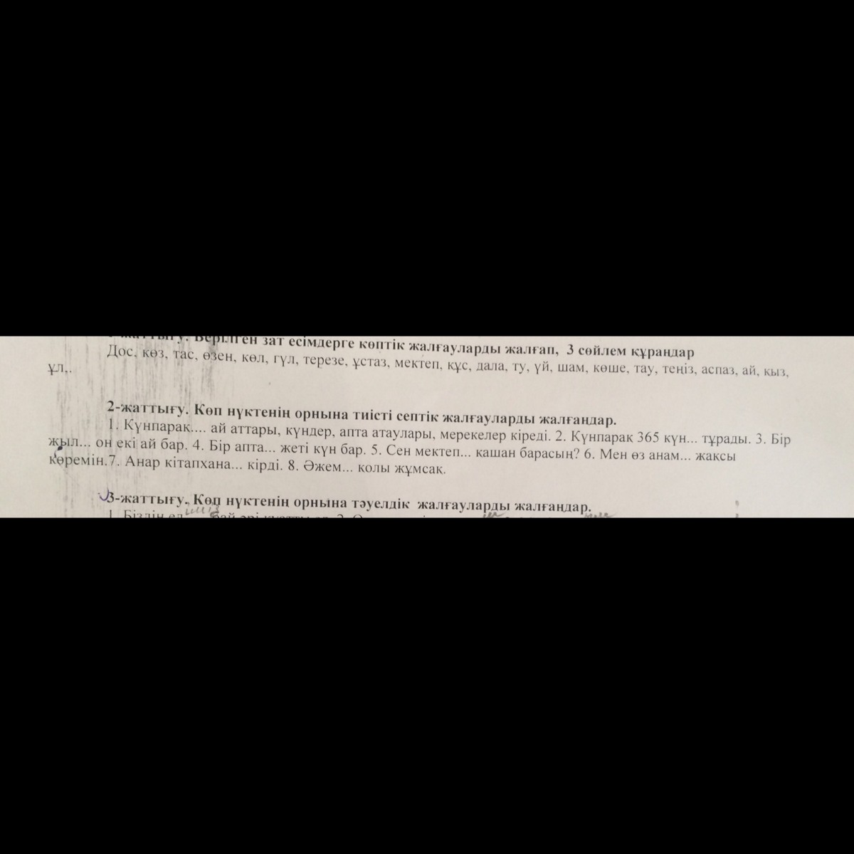кунпаракка ай аттары,кундер,апта атаулары,мерекелер киреди.кунпарак 365кунде турады.бир жылда он еки ай бар.бир аптада жети кун бар.сен мектепке кашан барасын? мен оз анамды жаксы коремин.анар китапханага кирди.ажемнин колы жумсак.