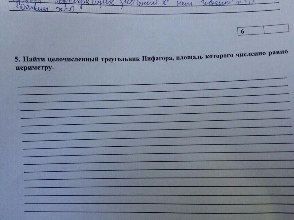 найти целочисленный треугольник Пифагора площадь которого численно равна периметру!!!