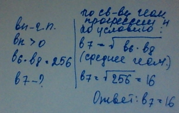 в геометрической прогрессии с положительными членами произведение 6 и 8 равно 256. Найдите 7 лен прогрессии
