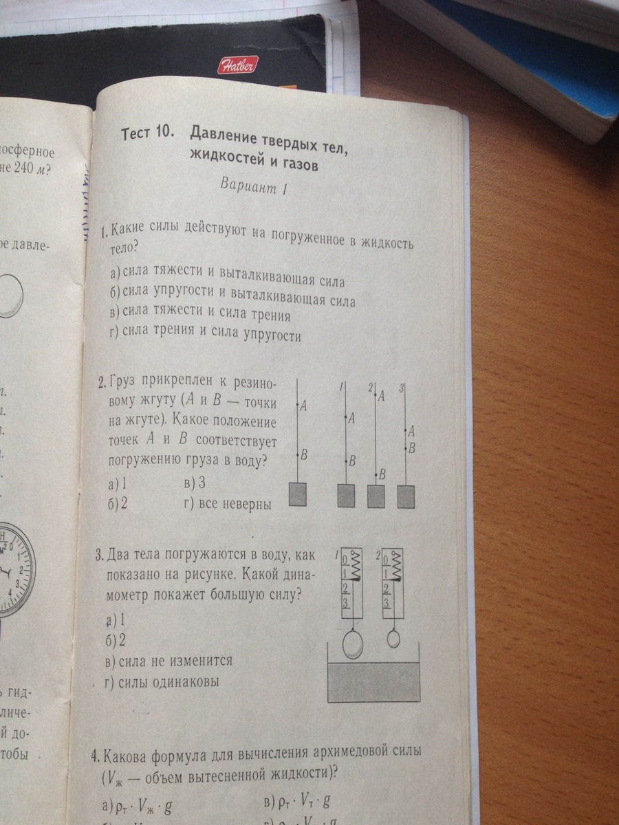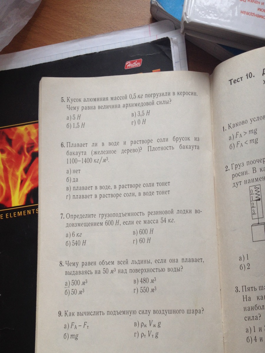 1)а сила тяжести и выталкивающая сила 5)а