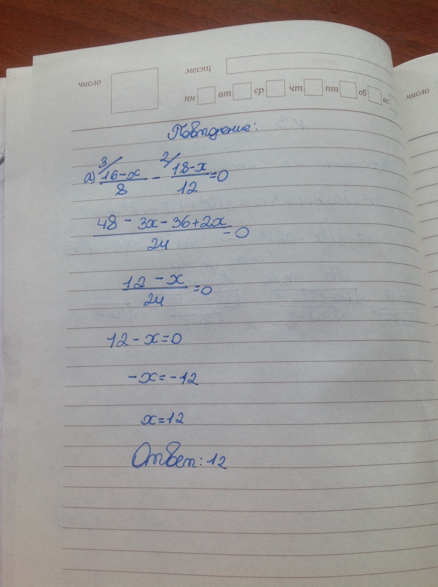 это пропорция, произведение крайних членов равно произведению средних членов, отсюда (16-x)*12 = (18-x)*8