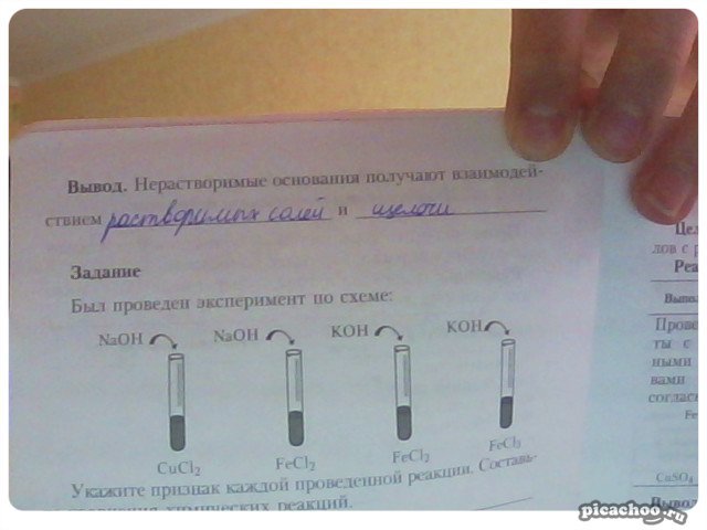 Укажите признак каждой проведенной реакции. Составьте уравнения химических реакций