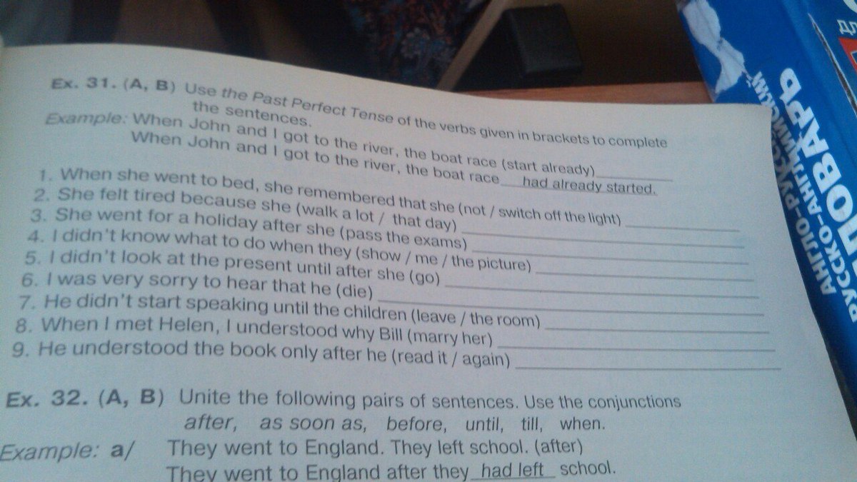 1. When she went to bed, she remembered that she didn't switch off the light.