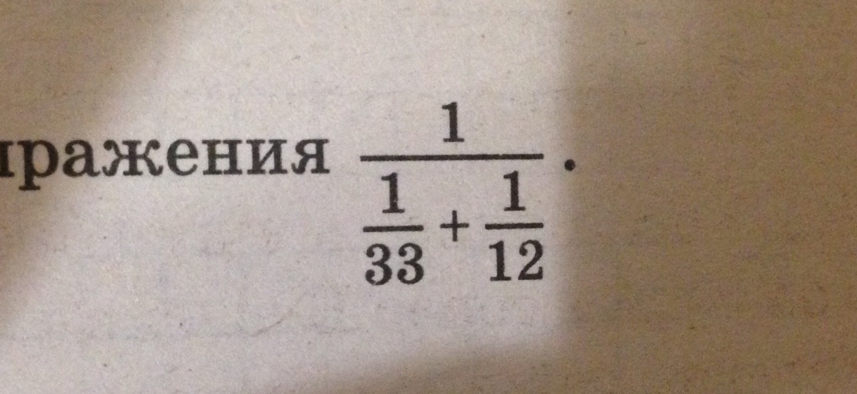 домножаем слагаемые знаменателя на 12 и 33 соответственно (чтобы привести к общему знаменателю) получаем 1/((12+33)/(33*12))=33*12/45=396/45=8,8