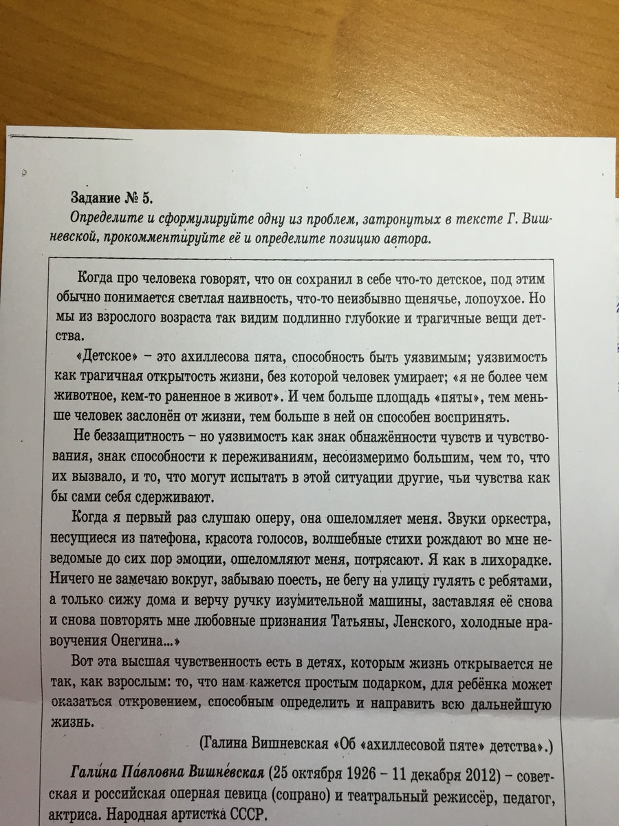 Определите и сформулируйте одну из проблем, затронутых в тексте Г. Вишневской, прокомментируйте её и определите позицию автора.